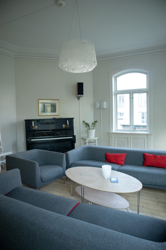 I første etasje finner du feststuen med utgang mot hagen. Denne stuen kan bookes i helgene og er også den som brukes til felles samlinger som kulturkvelder på huset. I andre etasje finner du tv-stuen utstyrt med tv og spill, og i tredje etasje er husets bibliotek som også brukes som lesesal under eksamensperioder.